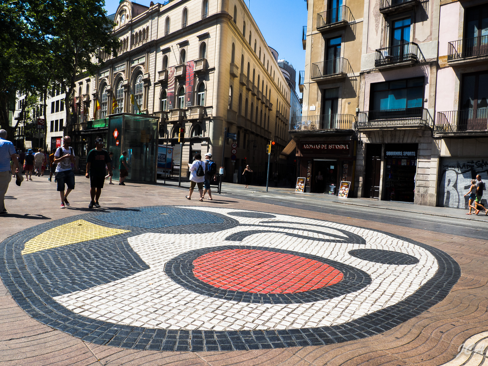 Le Pla de l'Os de Joan Miró au cœur de la Rambla de Barcelona.